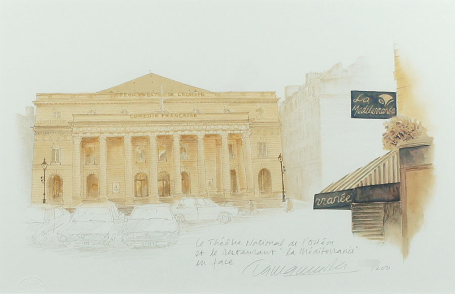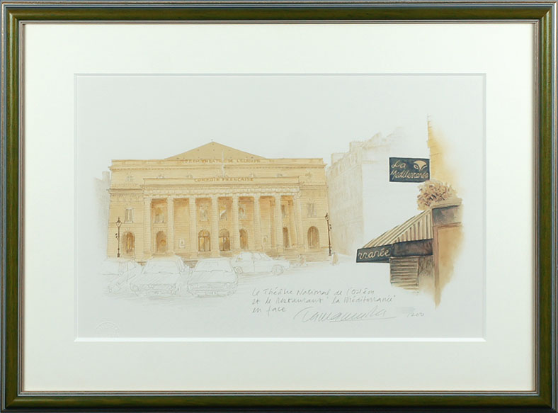 玉村豊男版画額「オデオン座と青い地中海レストラン」