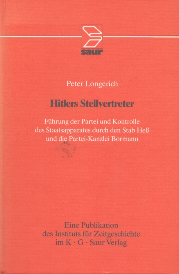 ヒトラーの代理人 ヘス参謀本部とボルマン党書記局による党の指導と国家機構の統制 Hitlers Stellvertreter: Fuhrung Der Partei Und Kontrolle Des Staatsapparates Durch Den Stab Hess Und Die Partei-kanzlei Bormann