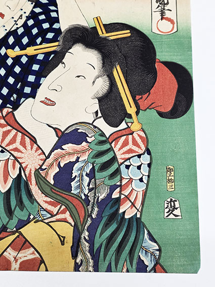 豊国三代浮世絵「踊形容外題尽 網模様燈籠菊桐三日月長屋の場」